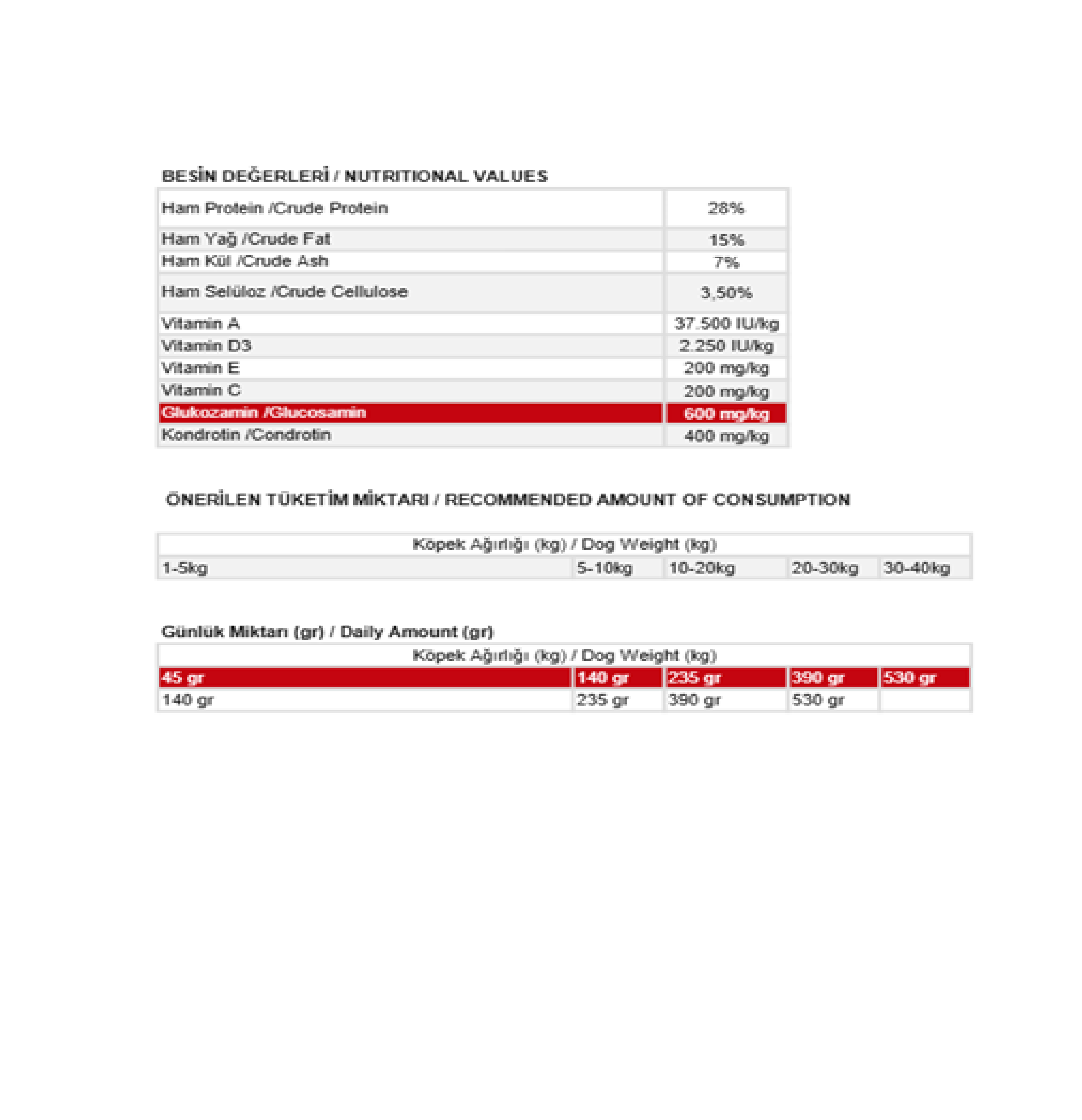 | Kondrotin /Condrotin | 400 mg/kg | |